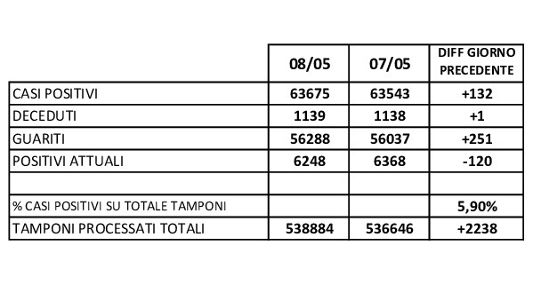 Covid-19 nel Casertano, 132 casi su 2.238 test effettuati con 251 guariti e una sola vittima