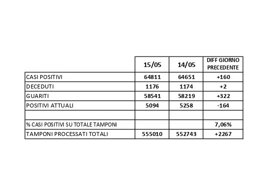 Resta stabile la percentuale dei positivi al Covid-19 in provincia di Caserta, che si attesta al 7,06% rispetto al numero di test effettuati e in confronto al 6,96% di ieri. Il bollettino quotidiano diffuso oggi dalla Asl locale evidenzia che su 2.267 tamponi giornalieri ne sono risultati positivi 160 e ci sono stati 322 guariti. Nelle scorse ventiquattr’ore, in tutta la provincia, sono stati registrati due decessi causati dall’infezione da Covid-19 e dalle sue conseguenze. Il numero complessivo delle morti per Coronavirus in Terra di lavoro dall’inizio della pandemia passa, dunque, da 1.174 a 1.176. Nel bollettino odierno diminuisce di poco anche il numero di contagi attivi nella città di Caserta, che ne conta attualmente 330. La città col maggiore numero di casi di positività della provincia è attualmente Maddaloni con 371 contagi, seguono Marcianise con 358, il capoluogo, Orta di Atella con 188, Aversa con 184 e San Marcellino con 183.