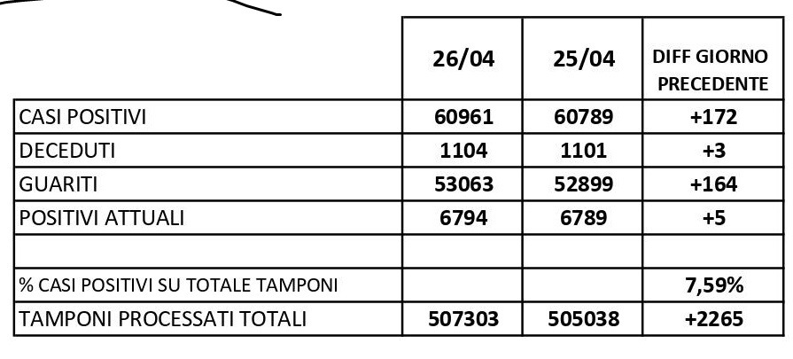 Diminuisce nettamente la percentuale dei positivi al Covid-19 in provincia di Caserta, che si attesta all’7,59% rispetto al numero di test effettuati e in confronto al 14,88% di ieri. Il bollettino quotidiano diffuso oggi dalla Asl locale evidenzia che su 2.265 tamponi giornalieri ne sono risultati positivi 172 e ci sono stati 164 guariti. Nelle scorse ventiquattr’ore, in tutta la provincia, sono stati registrati tre decessi causati dall’infezione da Covid-19 e dalle sue conseguenze. Il numero complessivo delle morti per Coronavirus in Terra di lavoro dall’inizio della pandemia passa, dunque, da 1.101 a 1.104. Nel bollettino odierno diminuisce anche il numero di contagi attivi nella città di Caserta, che ne conta attualmente 455. La città col maggiore numero di casi di positività della provincia rimane ancora il capoluogo, seguita da Maddaloni con 432 contagi, Marcianise con 431, Aversa con 328, Orta di Atella con 300 e San Felice a Cancello 259.