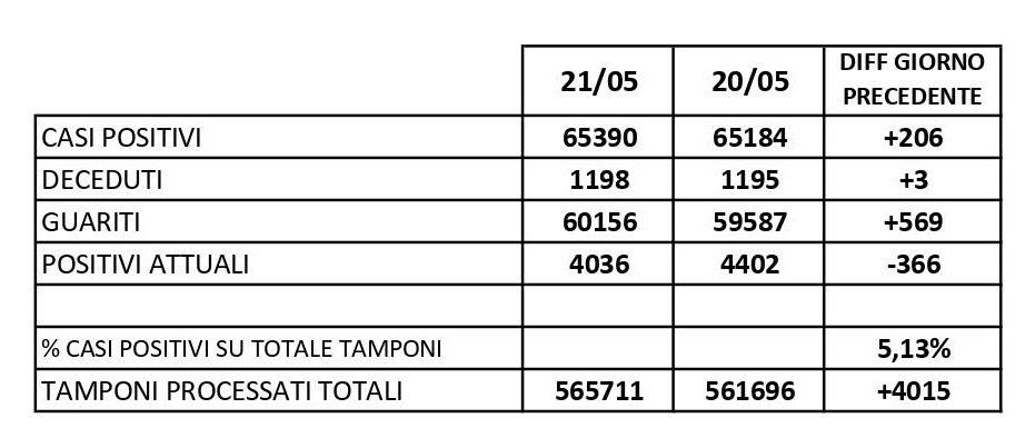 Cala, anche se di poco, la percentuale dei positivi al Covid-19 in provincia di Caserta, che si attesta al 5,13% rispetto ai test effettuati e in confronto al 6% di ieri. Il bollettino quotidiano diffuso oggi dalla Asl locale evidenzia che su 4.015 tamponi giornalieri ne sono risultati positivi 206 e ci sono stati 569 guariti. Nelle scorse ventiquattr’ore, in tutta la provincia, si sono registrati tre decessi causati dall’infezione da Covid-19 e dalle sue conseguenze. Nel bollettino odierno diminuisce anche il numero di contagi attivi nella città di Caserta, che ne conta attualmente 283. La città col maggiore numero di casi di positività della provincia è attualmente Maddaloni con 330 contagi, seguono Marcianise con 287, il capoluogo, San Marcellino con 165, Trentola Ducenta con 153 e Aversa con 149.