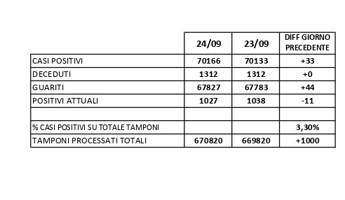 Report Covid-19 – Elaborazione effettuatail 25/settembre/2021