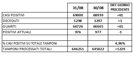Report Covid-19 – Elaborazione effettuatail 01/settembre/2021