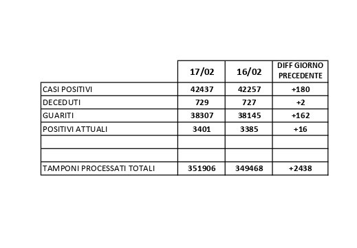 Per quanto riguarda il Casertano, il bollettino quotidiano diffuso dalla Asl di Caserta e aggiornato alle 14 delinea una situazione epidemiologica stabile: su 2.438 tamponi giornalieri, infatti, ne sono risultati positivi 180 e ci sono state 162 guarigioni. Nelle scorse ventiquattr’ore, purtroppo, in tutta la provincia sono stati registrati due nuovi decessi causati dall’infezione da Covid-19 e dalle sue conseguenze. Il numero complessivo delle morti per Coronavirus in Terra di lavoro dall’inizio della pandemia, dunque, sale da 727 a 729. Nel bollettino odierno, cala il numero di contagi attivi nella città di Caserta, che ne conta attualmente 226. La città col maggiore numero di casi di positività della provincia è al momento proprio il capoluogo, seguita da Maddaloni con 199 contagi, Marcianise con 177 e San Felice a Cancello con 152.