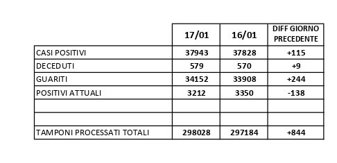 Per quanto riguarda il Casertano, il bollettino quotidiano diffuso dalla Asl di Caserta e aggiornato alle 11 delinea una situazione epidemiologica sostanzialmente stabile: su 844 tamponi, infatti, ne sono risultati positivi 115 e vi sono state 244 guarigioni. Purtroppo, nelle scorse ventiquattr’ore, in tutta la provincia sono stati registrati 9 nuovi decessi a causa dell’infezione da Covid-19 e delle sue conseguenze. Il numero complessivo delle morti per Coronavirus in Terra di lavoro dall’inizio della pandemia a oggi sale, dunque, da 570 a 579.