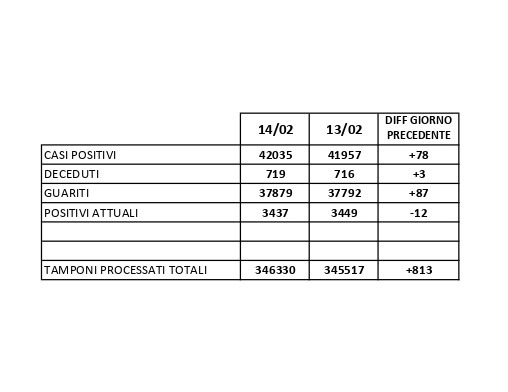 Per quanto riguarda il Casertano, il bollettino quotidiano diffuso dalla Asl di Caserta e aggiornato alle 12.30 delinea una situazione epidemiologicastabile: su appena 813 tamponi giornalieri, infatti, ne sono risultati positivi 78 e ci sono state 87 guarigioni. Nelle scorse ventiquattr’ore, purtroppo, in tutta la provincia sono stati registrati tre nuovi decessi causati dall’infezione da Covid-19 e dalle sue conseguenze. Il numero complessivo delle morti per Coronavirus in Terra di lavoro dall’inizio della pandemia, dunque, sale da 716 a 719. Nel bollettino odierno, cresce il numero di contagi attivi nella città di Caserta, che ne conta attualmente 231. La città col maggiore numero di casi di positività della provincia è al momento proprio il capoluogo, seguita da Maddaloni con 230 contagi, Marcianise con 177 e San Felice a Cancello con 167.