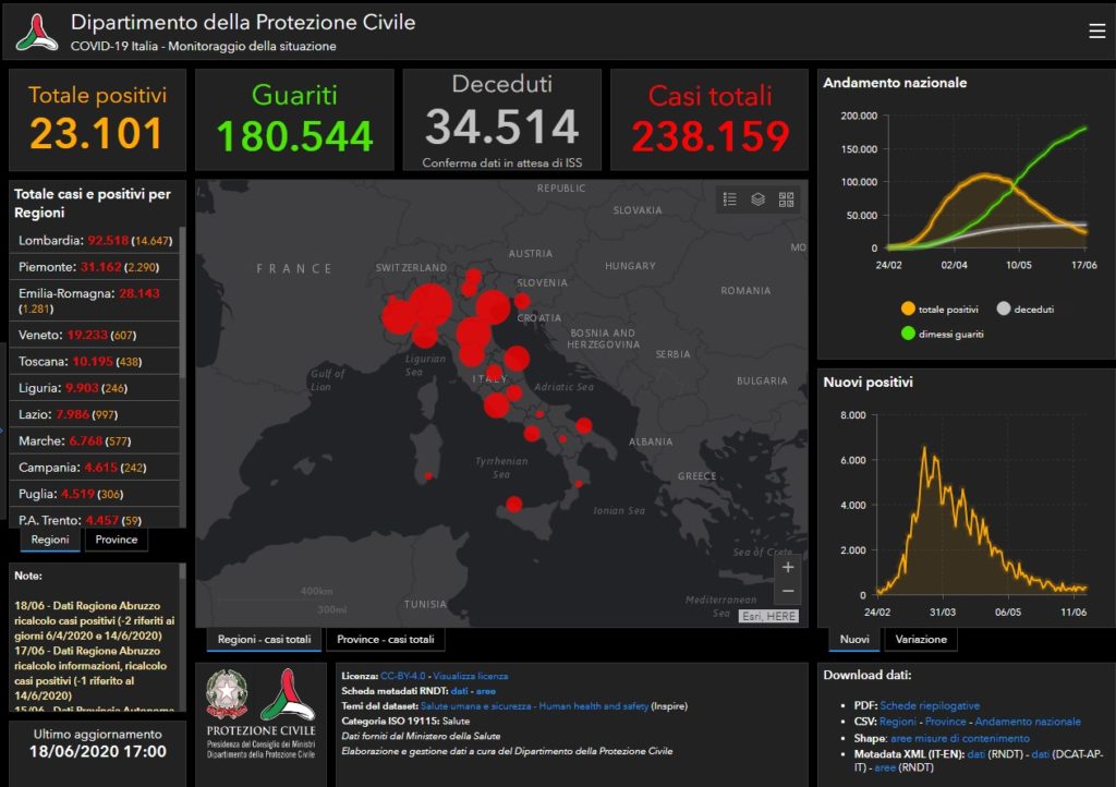 Per quel che riguarda invece la situazione nel resto del Paese, i dati pubblicati nell’ultimo aggiornamento della Protezione civile nazionale parlano di un totale di 238.159 casi positivi registrati dall’inizio della pandemia, di questi sono deceduti 34.514 pazienti mentre la somma dei guariti e dei dimessi sale a 180.544 unità. Le persone attualmente positive, tra quelle ricoverate e messe in quarantena sono 32.101. I trend giornalieri restano stabili, c’è però da sottolineare che per la prima volta dal sette aprile, si è registrato un lieve aumento dei pazienti ricoverati in terapia intensiva unitamente al numeri di decessi. I tamponi risultati positivi oggi in tutta Italia sono 333, di questi 216 solamente in Lombardia, che registra ancora il triste primato nazionale con il 64,8% dei nuovi contagi da Covid-19. Delle 66 morti avvenute oggi a causa del virus, più della metà si registrano sempre nella regione lombarda, mentre sono dieci le regioni italiane che non registrano alcun decesso giornaliero. Sono quattro invece le regioni Covid free tra cui Valle d’Aosta, Umbria, Molise e Basilicata. Risultati, questi, che hanno portato l’immunologo Anthony Fauci a complimentarsi per le misure anti-Covid adottate dall’Italia. Lo scienziato americano, la cui famiglia è originaria della Campania, ha invitato però a non abbassare la guardia, a causa della possibilità concreta di una seconda ondata di contagi prevista entro il prossimo autunno. Grande timore c’è infine in Cina per l’esposione a Pechino di un grosso focolaio di Sars-Cov-2.