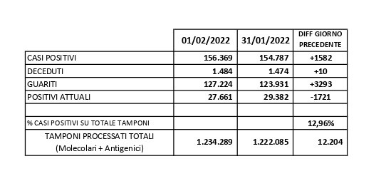 Report Covid-19 – Elaborazione effettuata il 02 febbraio 2022