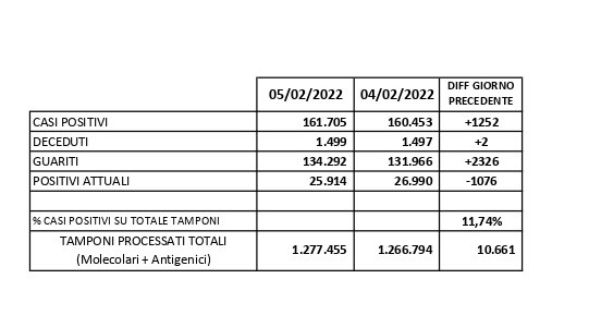 Report Covid-19 – Elaborazione effettuata il 06 febbraio 2022