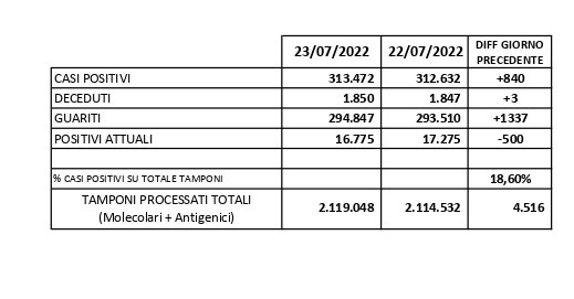 Report Covid-19 – Aggiornato al 24/luglio/2022