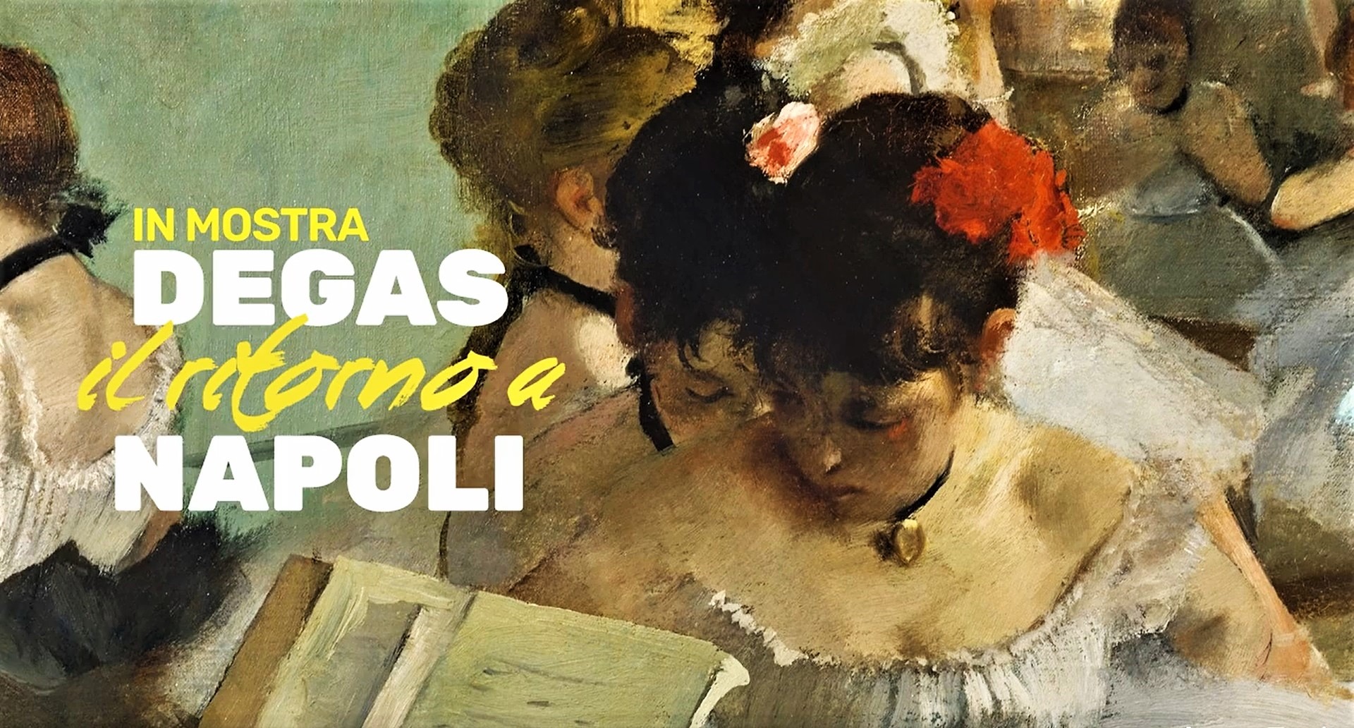 Lo spazio espositivo è stato allestito nella grande Sala del Refettorio del sito monumentale, suddivisa in tre aree tematiche per descrivere al meglio l’essenza artistica del pittore francese partendo dal suo rapporto con la città partenopea. La prima sezione della mostra, incentrata sugli anni giovanili, guida i visitatori nelle vicende della famiglia Degas, ricostruendo le atmosfere della Napoli dell’Ottocento con immagini storiche e l’analisi del Ritratto di René Hilaire Degas, nonno dell’artista, primo importante dipinto realizzato dal pittore parigino durante la sua permanenza in città. Il ritratto è custodito presso il Musée d’Orsay di Parigi. Il percorso prosegue con la proiezione de La Famille Bellelli, dipinto riconosciuto come uno dei capolavori indiscussi dell’artista francese, conservato anch’esso al Musée d’Orsay. L’opera è un esempio lampante di come l’arte di Degas non si limitasse a rappresentare il “tangibile”, bensì cercasse di scavare a fondo negli stati d’animo dei soggetti ritratti, cogliendone la complessità psicologica. Da questo dipinto traspare un grande senso di inquietudine e di incomunicabilità, quasi ad anticipare di un secolo le atmosfere alienanti del cinema di Antonioni e di Bergman.