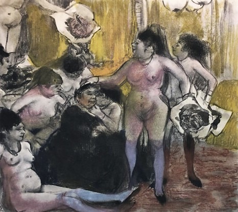 Il fulcro di questa sezione sono senz’altro le opere realizzate per illustrare la novella La Maison Tellier, di Guy de Maupassant, e i monotipi realizzati per il racconto La Famille Cardinal del drammaturgo Ludovic Halévy. Spiccano tra queste anche le opere di altri celebri artisti che ebbero un intenso rapporto con il pittore impressionista, come l’acquaforte Degas e Desboutin di Pablo Picasso e i disegni a inchiostro della Maison Close di Jules Pascin. Il percorso prosegue con la collezione di studi e disegni preparatori del celebre dipinto Miss Lala au cirque Fernando, custodito alla National Gallery di Londra. In questa sezione viene descritta anche la passione di Degas per la fotografia, con scatti originali provenienti dalla Bibliothèque Nationale de France: per il pittore francese, infatti, la fotografia fu uno strumento fondamentale per lo studio e la riproduzione del movimento nella pittura.