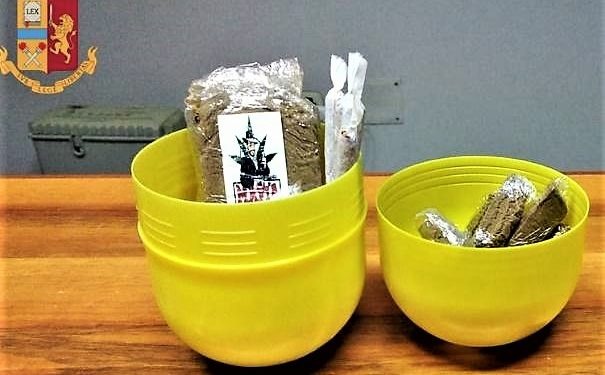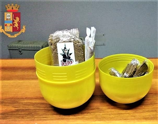 I sospetti degli agenti si sono rivelati presto fondati: il trentaquattrenne è stato trovato in possesso di quattro stecche di hashish e quattro sigarette di “fumo” confezionate artigianalmente. I controlli si sono quindi spostati presso la sua abitazione: qui, nella camera da letto, sono state trovate altre dosi di droga, occultate in vari oggetti di arredamento. Il pusher aveva inoltre nascosto dello stupefacente, già confezionato e pronto per la vendita, all’interno di un contenitore giallo in plastica usato per custodire le “sorprese” delle uova di Pasqua: tale ingegnoso escamotage veniva utilizzato per cedere la droga ai propri acquirenti senza dare troppo nell’occhio.