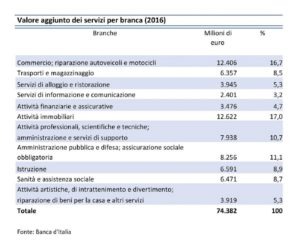 Non è sull’industria manifatturiera, tuttavia, che dobbiamo attenderci l’impatto maggiore dell’emergenza Coronavirus. Da tempo l’economia della Campania si è “dematerializzata”, con il settore dei servizi che contribuisce per circa l’80% al valore aggiunto regionale. Diversi sono i comparti del terziario che presentano un’esposizione significativa agli effetti dell’epidemia. Il sistema della logistica (oltre 6 miliardi di valore aggiunto) sta subendo pesantemente la frenata dei flussi di merci e persone. Il comparto dei servizi professionali e alle imprese (8 miliardi di valore aggiunto) pagherà nel tempo il calo delle attività produttive e dei redditi.