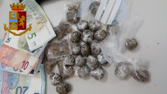 Intervenuti tempestivamente in sella alle motociclette, i falchi hanno bloccato Sanneh subito dopo la transazione, mentre ancora stringeva in mano la banconota da 10 euro ricevuta come pagamento. A seguito di una perquisizione personale, è emerso come il ragazzo tenesse occultate all’interno degli slip 27 bustine di droga dal perso complessivo di 30 grammi, poi identificata come marijuana, e 50 euro in contanti.  Ulteriori accertamenti condotti sul profilo del giovane fermato hanno fatto emergere come Sanneh avesse a suo carico numerosi precedenti penali e di polizia, riguardanti anche reati legati alla droga. In virtù di ciò, il ventenne è stato dichiarato in arresto per detenzione di sostanza stupefacente ai fini dello spaccio e, come disposto dal magistrato di turno, scortato presso la casa circondariale di Santa Maria Capua Vetere, dove rimarrà a disposizione dell’autorità giudiziaria in attesa dell’udienza di convalida. Sempre nel corso della giornata di ieri, era finito in carcere per il medesimo reato anche L. R., trentottenne residente nel comune di Gricignano d’Aversa.