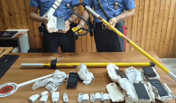 Ebbene l’ennesimo caso, sicuramente più fantasioso, e avvenuto presso il carcere di Carinola, in provincia di Caserta, dove i carabinieri hanno scoperto due uomini, un 38enne di Pontecagnano (Salerno) e un 25enne di Torre Annunziata (Napoli), in possesso di una fionda gigante, che avrebbero verosimilmente utilizzato per lanciare, letteralmente, i cellulari ai detenuti all’interno della casa circondariale. I carabinieri della stazione di Carinola, impegnati in un servizio di controllo del territorio, hanno sorpreso i due a bordo di un’automobile, una Opel Corsa, parcheggiata a circa 200 metri dal muro perimetrale del carcere: è stata proprio la presenza della vettura a pochi passi dal carcere, unitamente al forte odore di cannabis che proveniva dall’abitacolo, a spingere i militari dell’Arma ad approfondire il controllo e a effettuare una perquisizione del veicolo e personale.
