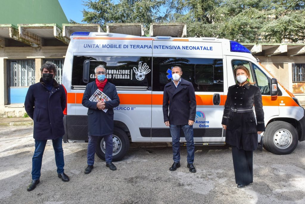 In un momento di emergenza sanitaria dovuta alla pandemia da Coronavirus, anche una sola ambulanza in più può fare la differenza. È stata donata, nella giornata di ieri, presso l’Azienda ospedaliera universitaria Federico II di Napoli, a beneficio di tutta la Regione Campania, un’ambulanza per il trasporto neonatale di emergenza, acquistata grazie alle offerte raccolte per il progetto sociale Un’ambulanza per la vita, promosso dalla Fondazione Cannavaro Ferrara. Durante la consegna ufficiale sono stati presenti il direttore generale Anna Iervolino, il direttore sanitario Emilia Anna Vozzella e il direttore del reparto di Neonatologia e Terapia intensiva e responsabile Servizio di trasporto di emergenza neonatale dell’Aou Federico II di Napoli Francesco Raimondi. Per quanto riguarda la Fondazione Cannavaro Ferrara, sono intervenuti, invece, il campione Fabio Cannavaro, uno dei fondatori, con il fratello Paolo e con Ciro Ferrara, oltre al direttore Vincenzo Ferrara. Un gesto importante e simbolico che segna una collaborazione destinata a continuare anche in futuro.