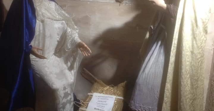 “La mangiatoia è vuota perché fratello ladro lo ha rubato”. Quando i fedeli della parrocchia di Sant’Antonio da Padova a Torre del Greco hanno visto il foglio con questa scritta sono stati colti da un misto di rabbia e rassegnazione. Il furto avvenuto la notte di Natale della statua a grandezza naturale del Bambinello, nel presepe posto all’esterno della chiesa di via Nazionale, ha reso impotente la comunità, sicura che almeno l’immagine sacra sarebbe sfuggita a tali irrispettosi gesti.