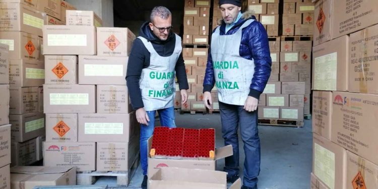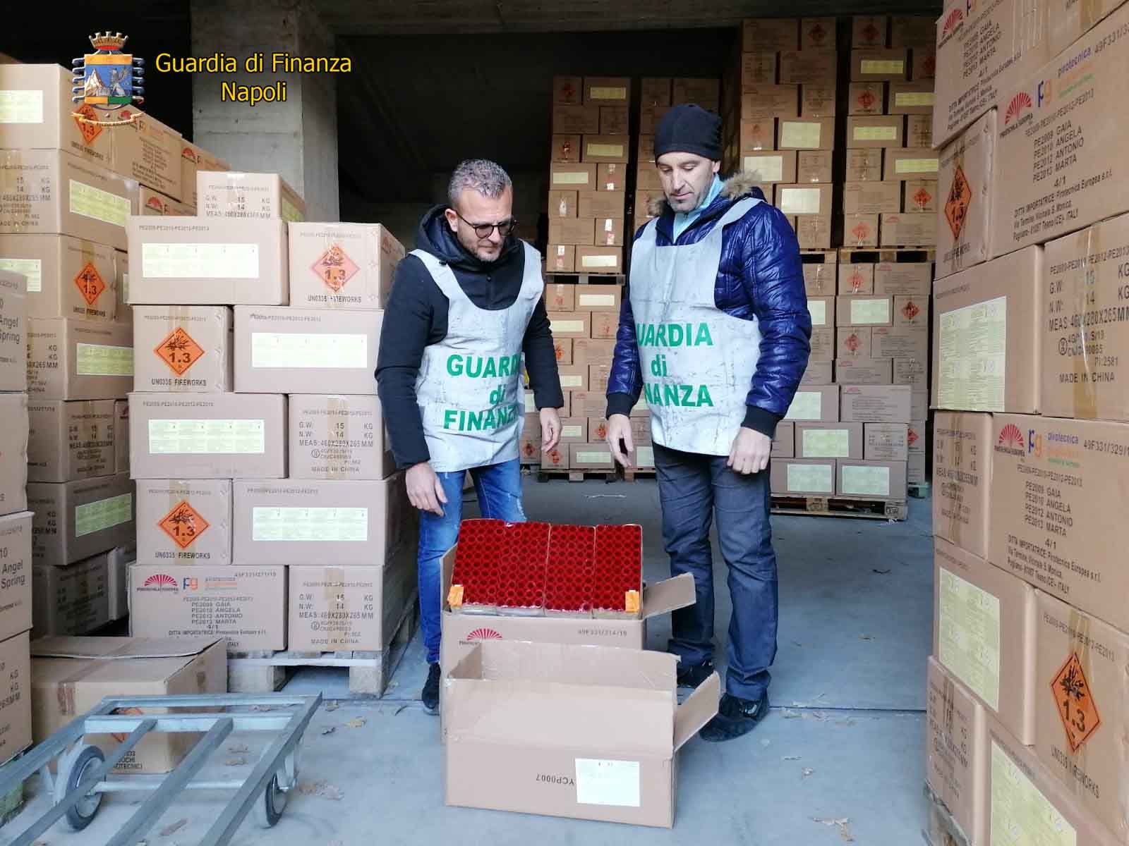 Il risultato più grosso è frutto di una operazione interprovinciale tra Napoli e Caserta. In particolare, i finanzieri della Compagnia di Giugliano in Campania, in collaborazione con i colleghi del Nucleo di polizia economico-finanziaria di Caserta, dopo aver notato un camion che entrava in un’azienda di importazione e vendita di fuochi d’artificio di Teano, hanno sequestrato 30 tonnellate di fuochi d’artificio di categoria F2, F3 e F4, contenenti una massa attiva di oltre 4 tonnellate di esplosivo, per un valore sul mercato di oltre mezzo milione di euro.