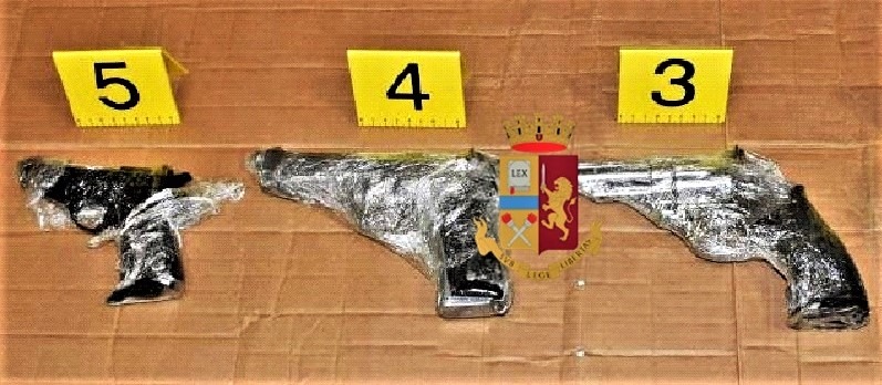 Arrotolate nel sacchetto di plastica e avvolte nel cellophane c’erano infatti tre pistole: una Beretta semiautomatica calibro 7,65 con matricola abrasa e completa di caricatore con otto cartucce al suo interno, un’altra pistola Beretta semiautomatica questa volta calibro 9×21 fs anch’essa con matricola abrasa e completa di caricatore con quattordici cartucce e un revolver Smith & Wesson calibro 357 magnum fornito di sei cartucce e risultato rubata nel novembre del 1996. All’interno del sacchetto la polizia ha inoltre trovato altre sei cartucce di diverso calibro. La busta è stata così sequestrata dagli agenti e il suo contenuto in armi è stato sottoposto agli esami balistici.