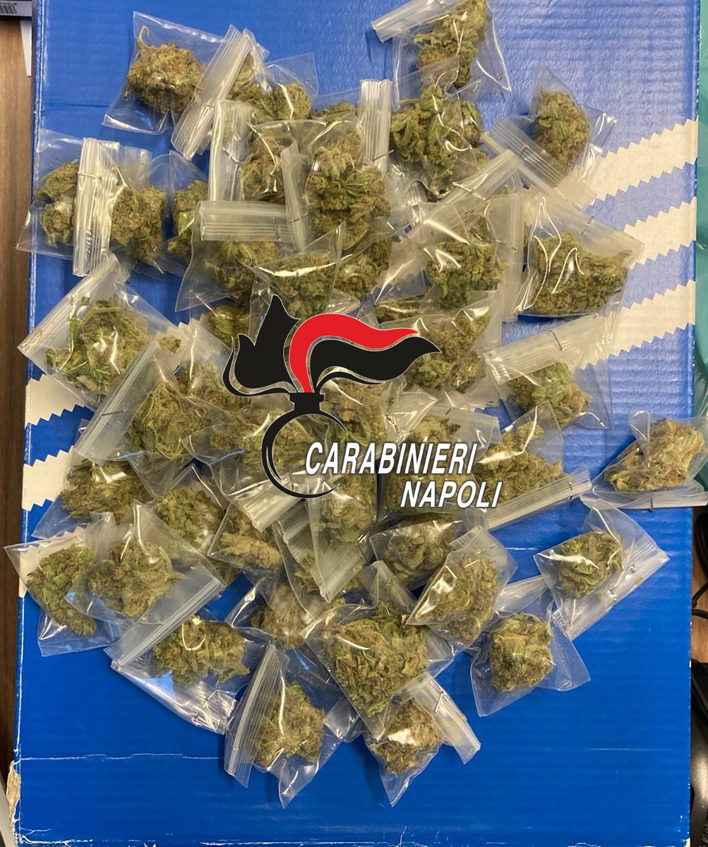 I carabinieri della sezione operativa di Giugliano in Campania hanno arrestato per detenzione di droga a fini di spaccio A. D. A., ventenne del luogo, già noto alle forze dell’ordine. Durante una perquisizione in un box auto riconducibile al ragazzo, i carabinieri hanno rinvenuto una scatola contenente 69 dosi di marijuana per complessivi 87 grammi. Con la droga anche il materiale per il confezionamento e un bilancino di precisione. Sequestrato, inoltre, un fucile mitragliatore da soft-air privo del tappo rosso. A. D. A. è ora ai domiciliari in attesa di giudizio.