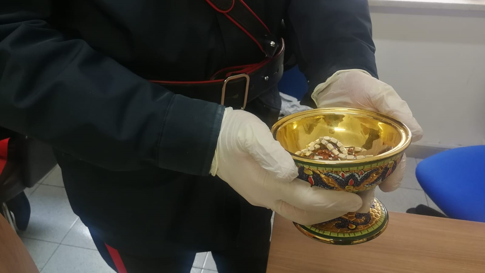 Un atto vandalico inspiegabile, un calice rubato ritrovato per caso. Sono gli elementi delle scene di apparente follia e dai risvolti surreali registrate nella giornata odierna a Giugliano in Campania, nella città metropolitana di Napoli, dove i carabinieri hanno deferito all’autorità giudiziaria un trentenne di origini nigeriane, con l’accusa di danneggiamento e ricettazione. L’uomo, già noto alle forze dell’ordine, è stato notato da alcuni passanti mentre era intento a danneggiare, con l’ausilio di una mazza di ferro e senza alcuna motivazione apparente, delle auto in sosta sul ciglio della strada in corso Campano. I testimoni hanno quindi provveduto ad allertare i carabinieri i quali, grazie anche all’acquisizione e all’analisi dei filmati di alcune telecamere a circuito chiuso installate lungo l’arteria cittadina, sono riusciti in breve tempo a identificare e rintracciare l’autore dell’inspiegabile atto vandalico. Braccato e sottoposto a perquisizione personale, il trentenne è risultato essere ancora in possesso della mazza metallica utilizzata per danneggiare le auto e, fatto ben più strano, di una pisside, un calice utilizzato nelle chiese per contenere le ostie durante le funzioni religiose.