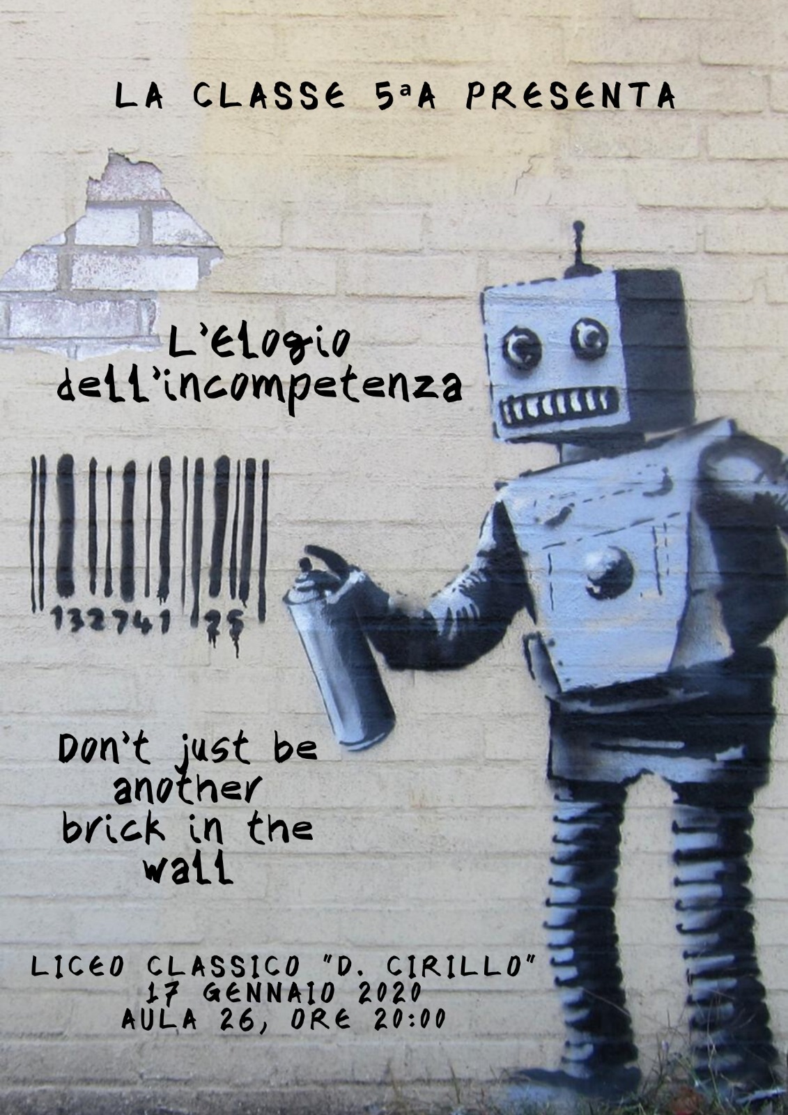 Per gentile concessione dei diretti interessati, pubblichiamo in anteprima il testo intitolato L’elogio dell’incompetenza, scritto dagli studenti della classe 5a A del Liceo classico “Domenico Cirillo” di Aversa col coordinamento della loro docente di Filosofia e Storia, la professoressa Ida Rotunno. Inserito all’interno di un percorso multisensoriale composto di immagini, suoni, musica e drammatizzazione, il testo – elaborato al termine di un percorso didattico in aula, durante il quale gli studenti hanno letto testi di filosofi contemporanei come Günther Anders, Hannah Arendt, Michel Foucault e altri – viene rappresentato stasera alle ore 20 al “Cirillo” (aula 26, secondo piano) nell’ambito della sesta edizione della Notte nazionale del Liceo classico, in programma oggi dalle ore 18 alla mezzanotte in contemporanea in 436 licei classici di tutta Italia. (d.d.p.)
