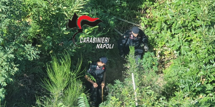 500 piante di cannabis, occultate in una zona isolata dei monti Lattari e destinate alla produzione di marijuana e hashish. È quanto portato alla luce dai carabinieri di Castellammare di Stabia, in località Monte Megano, sul versante montuoso che circonda la cittadina di Gragnano: i militari, supportati dall’alto da un velivolo del Nucleo elicotteristi di Pontecagnano, hanno scoperto numerosi filari di piante illegalmente coltivate, che ricoprivano un’area vasta e scoscesa, difficilmente raggiungibile con mezzi convenzionali. Un fenomeno, quello della coltivazione di piante di cannabis, che risulta particolarmente diffuso nella zona dei monti Lattari: solo nell’ultimo mese e mezzo, dal 28 maggio ad oggi, sono state quasi 2mila le piante localizzate, sequestrate e sottratte al mercato della droga, un volume di fusti che avrebbe fruttato ai narcotrafficanti, a seguito di una eventuale immissione nelle reti dello spaccio, circa 5 milioni di euro.