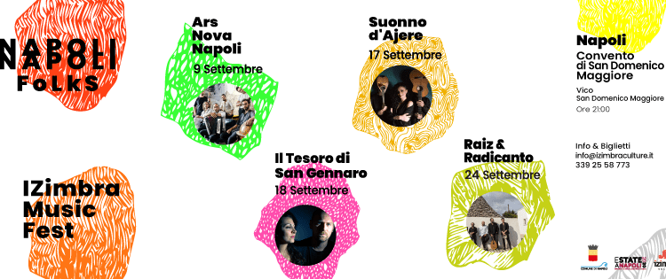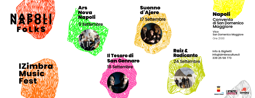 Nell’ambito del ricco cartellone di Estate a Napoli 2020, programmato dal Comune partenopeo, si fa tappa nell’affascinante scenario del convento di San Domenico Maggiore, dove dal 9 al 24 settembre si svolge la prima edizione della rassegna musicale IZimbra Music Fest, curata da Chiara Savelli e Marcello Squillante e dedicata alla world music, quale contaminazione e condivisione di tradizioni popolari e culture mediterranee. Nata per volontà dell’associazione IZimbra Culture,  IZimbra Music Fest prevede quattro concerti di artisti affermati, ma anche di giovani talenti che portano avanti con originalità e passione progetti di ricerca e valorizzazione della tradizione.