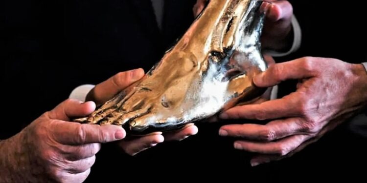 “Si tratta di un legame molto forte e profondo quello che lega un grande artista come Peppino Di Capri, il quale rappresenta con orgoglio e passione un simbolo della napoletanità in tutto il mondo, e Diego Armando Maradona. Un legame che non potevo non suggellare che con un dono prezioso“, dichiara con emozione Stefano Ceci. La preziosa e simbolica scultura, la quale riproduce con estrema fedeltà e con dovizia di particolari la pianta del piede sinistro di Diego Armando Maradona, è stata ottenuta nel 2018, quando il campione argentino era ancora in vita, attraverso un’accurata e precisa scansione in 3D grazie alla quale è stato possibile riprodurre con assoluta fedeltà il piede “magico” di Maradona. Dal calco ottenuto è stata così realizzata la preziosissima scultura in una lega metallica particolare e unica nel suo genere, il “bronzo gold statuario”, di altissima qualità nonché di grande valore, ed è stata successivamente incastonata in una splendida cornice creata su misura. È grazie a iniziative simboliche e piene di significato come quella che si terrà domenica a Napoli che la memoria di Diego Armando Maradona continuerà a vivere imperterrita nel cuore di milioni di tifosi napoletani e di tutti i veri sportivi e amanti del calcio in tutto il mondo.