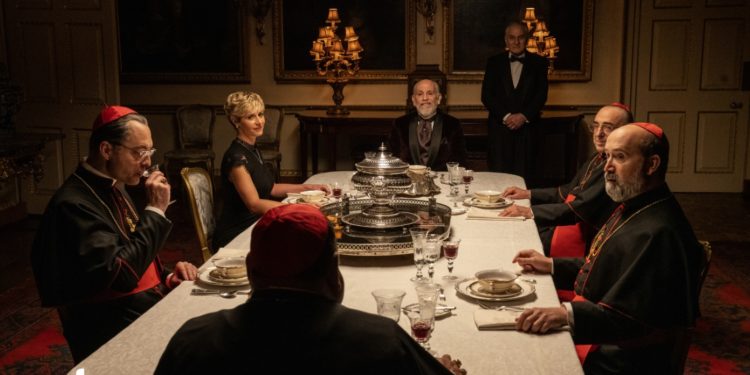 Scritta da Paolo Sorrentino con Umberto Contarello e Stefano Bises, The New Pope è una serie Sky/HBO/Canal + prodotta da Lorenzo Mieli e Mario Gianani per The Apartment e Wildside, parte di Fremantle, e co-prodotta da Haut et Court TV e The Mediapro Studio. Il distributore internazionale è Fremantle. 22 settimane di riprese, 4.500 costumi, ben 450 papaline e cappelli e più di 500 croci, fra quelle preziose per cardinali e vescovi e quelle per suore, frati e ordini religiosi, per una serie di caratura internazionale nella produzione e nel cast: fra protagonisti e figurazioni (più di 9mila), sul set attori provenienti da 65 Paesi nel mondo. Oltre ai due volte nominati agli Oscar Jude Law e John Malkovich, nel cast ci sono anche Silvio Orlando, Javier Cámara, Cécile de France, Ludivine Sagnier e Maurizio Lombardi, già protagonisti in The Young Pope. New entry, invece, sono Henry Goodman, Ulrich Thomsen, Mark Ivanir, Yuliya Snigir, Massimo Ghini, per una serie che vede nel cast anche due guest star d’eccezione come Sharon Stone e Marilyn Manson.