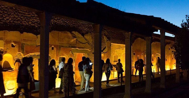 Da sabato prossimo, 7 settembre 2024, riprendono le passeggiate notturne presso i siti archeologici vesuviani che, anche quest’anno, aprono i cancelli oltre il consueto orario di apertura. L’iniziativa, che rientra nell’ambito dei progetti di valorizzazione promossi dal MiBAC, coinvolge Pompei, Villa Arianna e Villa San Marco, il Museo archeologico libero D’Orsi a Stabia, Villa di Poppea a Oplontis, l’Antiquarium e Villa Regina a Boscoreale.
