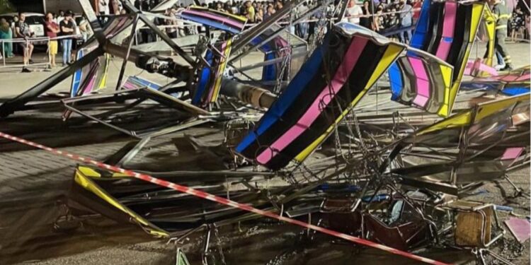 Tanta paura, ieri nel tardo pomeriggio, a Palma Campania, in provincia di Napoli, per il crollo di una giostra (quella dei seggiolini volanti), nell’area parcheggio di via Querce. Non è chiaro come sia avvenuto l’incidente, ma il corpo centrale assieme ai sediolini stessi sembrerebbe essere finito improvvisamente al suolo, forse per un cedimento strutturale.