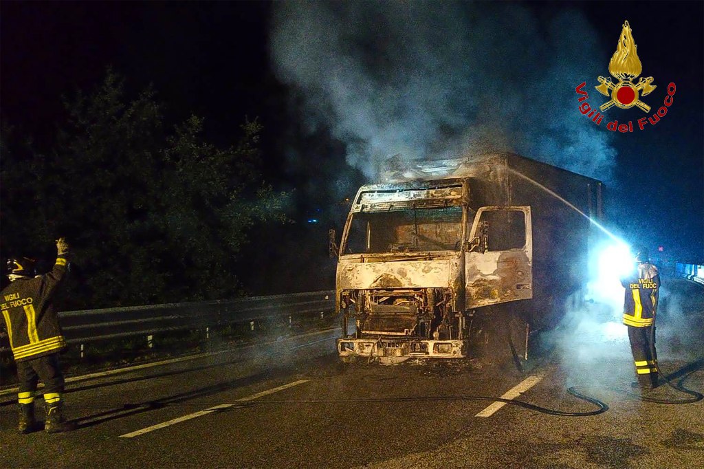 Sono stati attimi di paura quelli vissuti dagli automobilisti in piena notte, intorno alle 4 del mattino, sull’autostrada A16 Napoli-Canosa, al chilometro 70,600 in direzione Canosa, nel territorio di Mirabella Eclano, dove un autocarro che trasportava frutta ha preso fuoco. Dopo la richiesta di soccorso dell’autista, in viaggio da Napoli con destinazione Foggia, la sala operativa del comando dei vigili del fuoco di via Zigarelli ha inviato immediatamente sul posto la squadra del distaccamento di Grottaminarda e due mezzi dalla sede centrale di Avellino. Grazie al tempestivo intervento, è stato possibile spegnere il grosso incendio, limitando le fiamme alla sola motrice dell’automezzo, salvando il carico di frutta. La corsia dell’autostrada, in direzione sud, è rimasta chiusa durante le operazioni di soccorso.