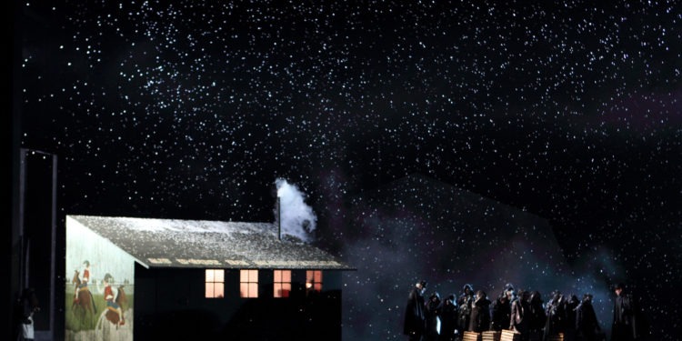 La Bohème, nella magnifica produzione del regista Richard Jones, coadiuvato da Julia Burbach, cattura sia gli aspetti umoristici sia quelli tragici dell’opera, mentre i disegni accattivanti dello scenografo Stewart Laing, in particolare nell’atto secondo, danno vita alla Parigi del Diciannovesimo secolo con i suoi abbaglianti negozi e caffè.