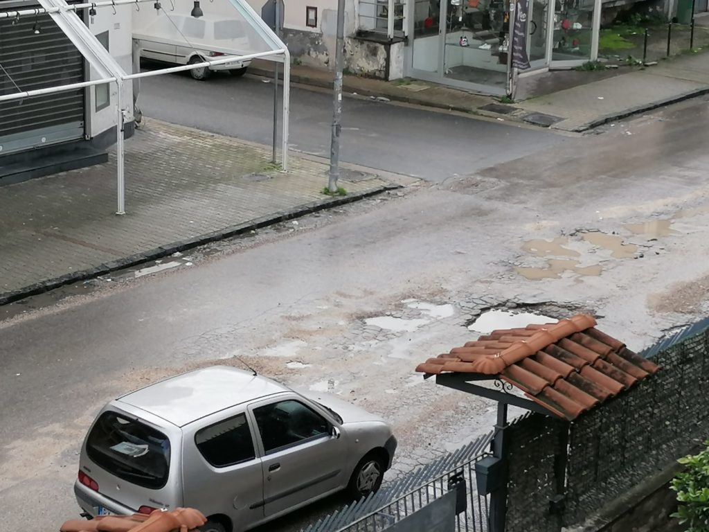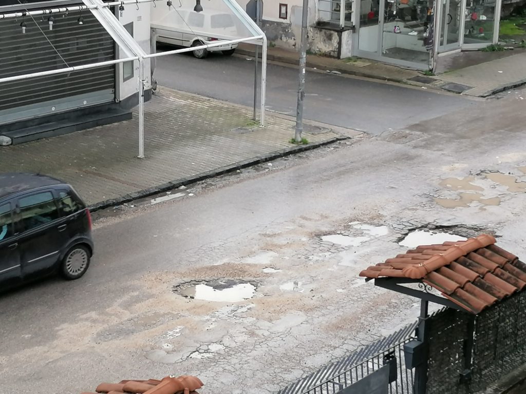 Da tempo si parla di intervenire in maniera strutturale, ma le pessime condizioni economiche delle casse comunali rendono difficoltosa l’opera di restyling. Si tappano solo le buche, letteralmente, con brecciolini e sabbia, che va via dopo poche ore. Anche questa mattina, dopo le piogge incessanti degli ultimi giorni, si sono coperte le enormi voragini, ma il via vai delle automobili ha, in poco tempo, riportato la situazione allo stato iniziale.
