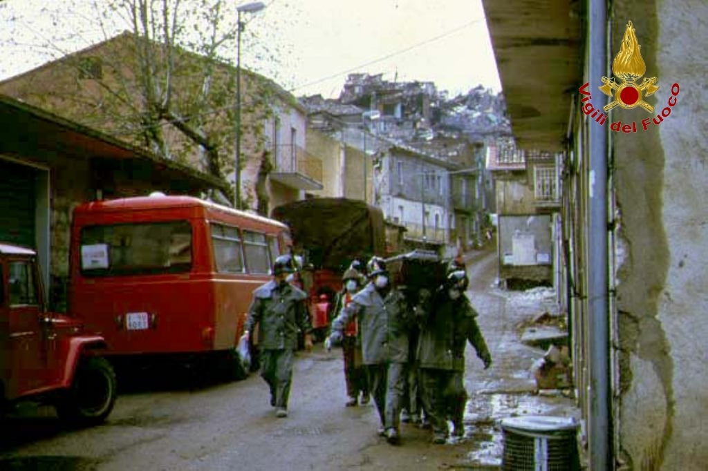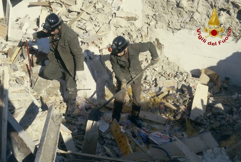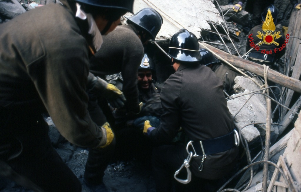 Il 23 novembre del 1980, alle ore 19.34, un fortissimo terremoto di magnitudo 6,8 della scala Richter, investì un’area di 17mila chilometri quadrati, con epicentro ubicato tra Campania e Basilicata. Novanta secondi di terrore che provocarono la distruzione di numerose città delle province di Avellino, Salerno e Potenza. Al termine delle operazioni di soccorso si contarono 2.914 corpi senza vita recuperati, circa 10mila furono i feriti e quasi 400mila i senzatetto. I vigili del fuoco furono tra i primi a intervenire per aiutare quasi quattro milioni di terremotati bisognosi di soccorso.