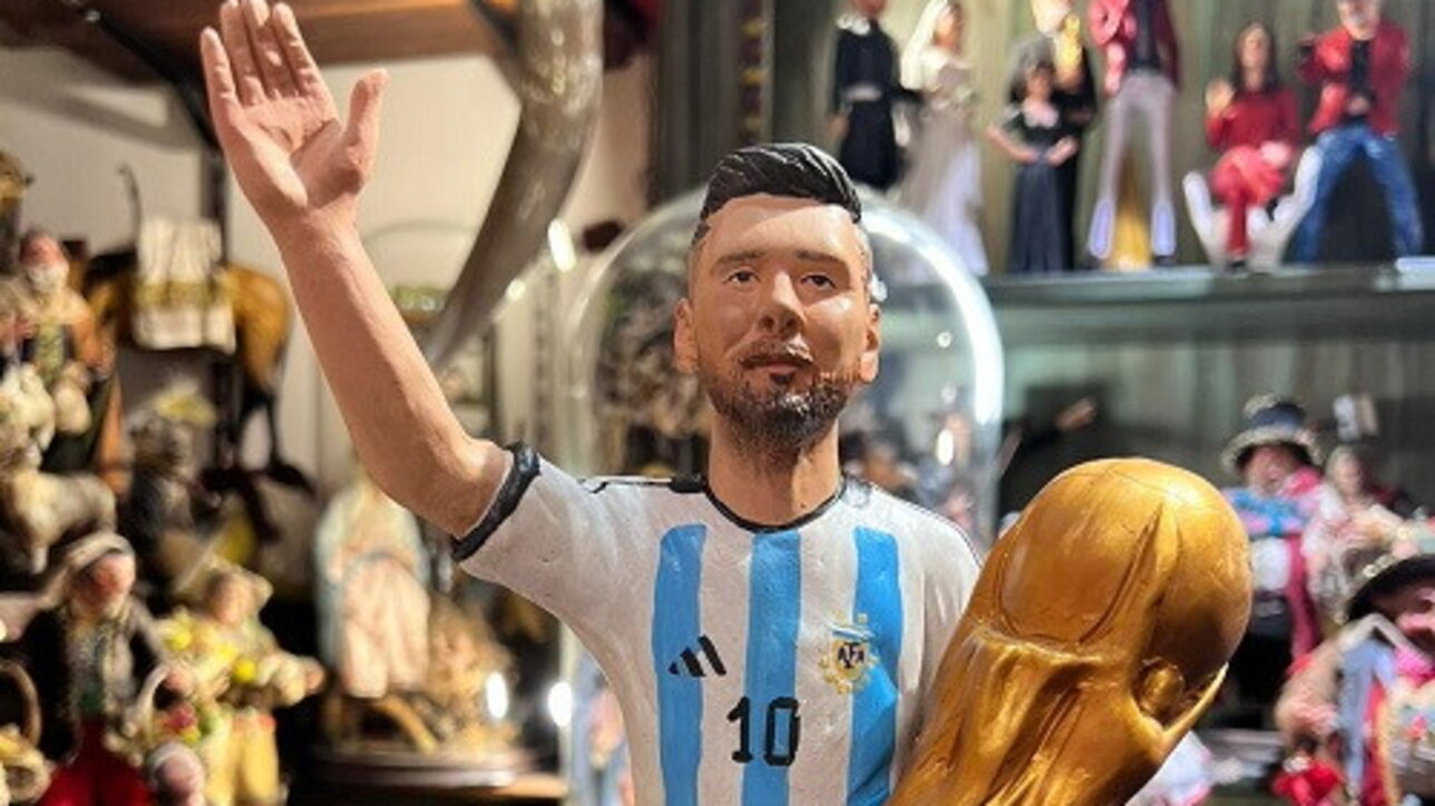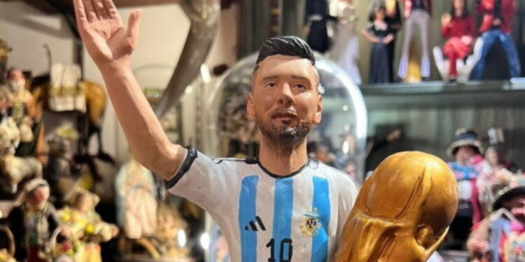 L’arte presepiale napoletana si arricchisce di un nuovo personaggio: il fenomeno argentino Leo Messi che alza al cielo la Coppa del Mondo 2022 conquistata ai rigori contro la Francia .La statuina è stata realizzata dall’artigiano di San Gregorio Armeno Genny Di Virgilio e gli appassionati di calcio e non, questo Natale, potranno arricchire il proprio presepe aggiungendo una riproduzione in scala del fenomeno di Rosario, rappresentato con la tenuta dell’albiceleste mentre mostra il trofeo che gli mancava. Nella strada dei presepi, quella di San Gregorio Armeno dove ogni anno si rinnova la tradizione del presepio Napoletano arriva l’ultimo nato Messi il campione del mondo 2022
