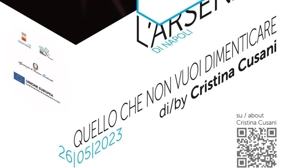 Dal 26 maggio al 2 luglio presso l’Arsenale di Napoli avrà luogo invece l’installazione di Cristina Cusani dal titolo Quello che non vuoi dimenticare, un progetto di arte immateriale dove il protagonista sarà il suono.