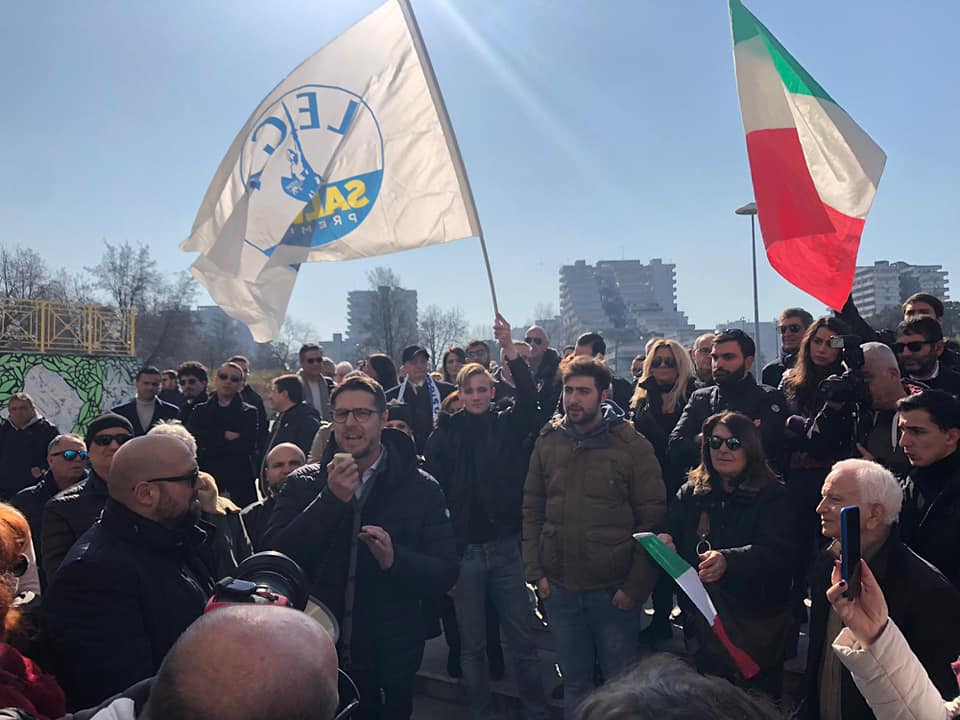 La Lega a Scampia, tra striscioni di protesta e inno di Mameli