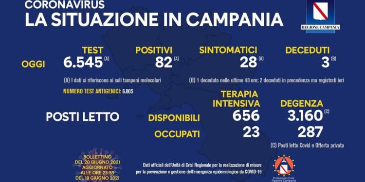 È stato pubblicato nel pomeriggio, come ormai da mesi, il bollettino dell’Unità di crisi della protezione civile regionale che monitora i nuovi positivi al Covid-19 in Campania. Rispetto al bollettino di ieri, che su 6.545 test comunicava la presenza di 82 nuovi casi di contagio, nelle scorse ventiquattr’ore altre 107 persone sottoposte al test sono risultate positive su un totale di 6.926 tamponi laringo-faringei effettuati dalle Asl dislocate sul territorio regionale.