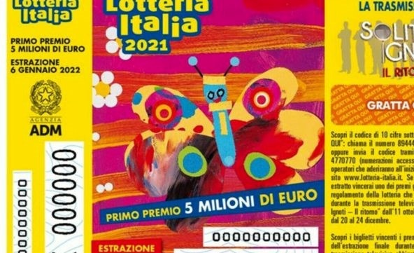 Il primo premio della Lotteria Italia da 5 milioni di euro va al tagliando T 018060 venduto da un distributore locale aRoma. Il secondo premio della Lotteria Italia da 2,5 milioni di euro va al tagliando P 297147 venduto a Formigine (MO). Il terzo premio della Lotteria Italia da 2 milioni di euro va al tagliando E 263508 venduto a Magliano Sabina (Rieti). Il quarto premio della Lotteria Italia da 1,5 milioni di euro va al tagliando N 330633 venduto a Roma. Il quinto premio della Lotteria Italia da un milione di euro va al tagliando D 137599 venduto a Trapani.