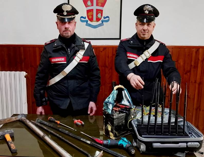I carabinieri durante il sopralluogo sono riusciti a recuperare l’attrezzatura completa utilizzata dai fuggitivi per compiere il colpo. Oltre agli arnesi da scasso, come cacciaviti di varie lunghezze, una mazzuola, una tronchese, un palanchino e un piede di porco. Inoltre, è stato rinvenuto un trolley contenente un sofisticato sistema jammer con 12 antenne e cavo con morsetti per attacco a batteria; dispositivo che avrebbe dovuto neutralizzare i sistemi di comunicazione e allarme, ma fortunatamente, non è riuscito a impedirlo.