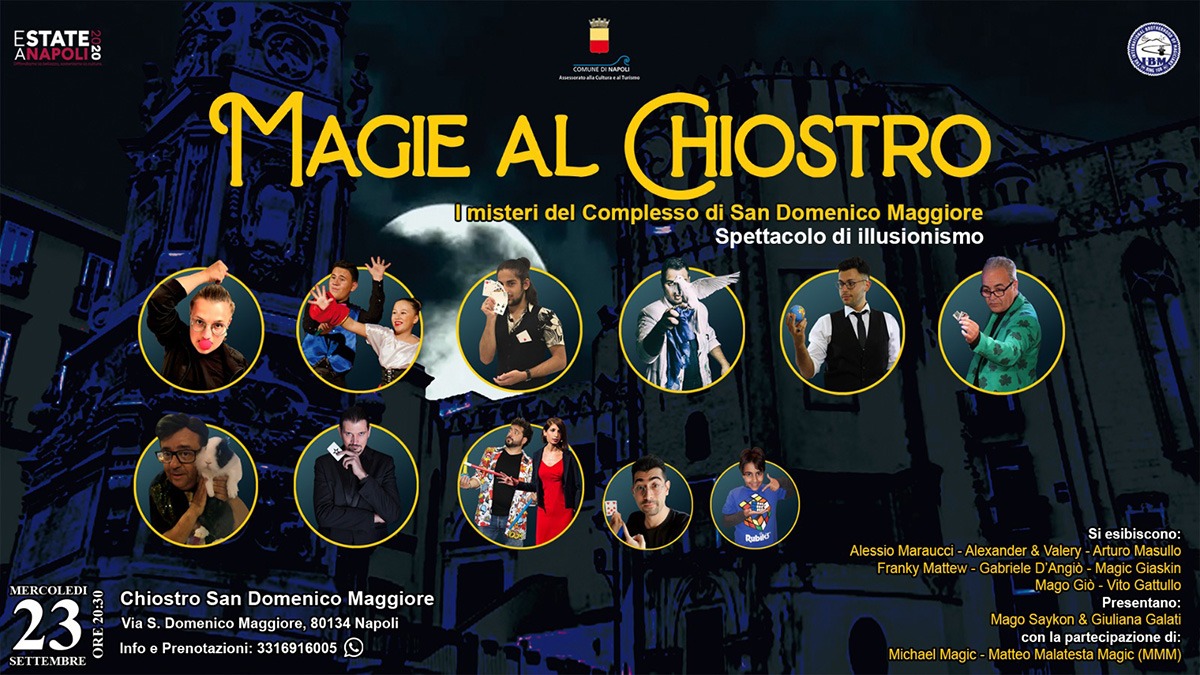 Sarà una serata piena di magia e illusionismo quella di mercoledì 23 settembre presso il chiostro di San Domenico Maggiore, nel cuore del centro storico di Napoli. “Magie al Chiostro – I misteri di San Domenico Maggiore” avrà, come tema conduttore, quella dei misteri legati alla cultura partenopea, partendo proprio dalla location che farà da cornice all’evento. La serata sarà scandita dall’esibizione degli artisti dell’associazione dei prestigiatori “Ring 108”, la più antica associazione del settore che ancora oggi opera in Italia. Una realtà tutta napoletana che affonda le sue radici nel secondo dopoguerra, quando il commendatore Vincenzo Giglio decise di fondare uno dei cosiddetti 350 anelli (ring, per l’appunto) che uniscono i prestigiatori di tutto il mondo nella International brotherhood of magicians. Lo spettacolo, che inizierà alle 20, è stato realizzato in modo da coinvolgere tutti gli spettatori, quasi come se si creasse una sola entità, sempre nel rispetto di tutte le norme igienico sanitarie legate alla al contenimento della diffusione del Coronavirus: l’evento infatti si svolgerà all’aperto e, tra le altre cose, sarà richiesto l’uso della mascherina e rispettato il distanziamento sociale. I biglietti per assistere allo spettacolo sono acquistabili, in prevendita, sul sito Etes.it.