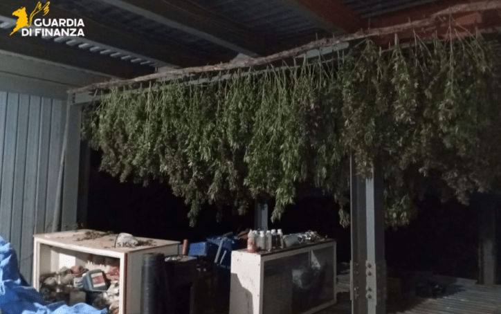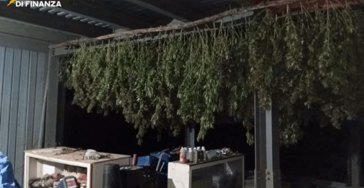Secondo quanto emerso dalle indagini, la struttura – sviluppata su due livelli – era stata completamente adattata per la produzione su larga scala. All’interno, i finanzieri hanno rinvenuto una rete di fili di ferro sospesa al soffitto per l’essiccazione delle infiorescenze, macchinari per la separazione del materiale vegetale e strumenti artigianali per il confezionamento. In un ambiente adiacente era stata allestita anche una serra, con piante in piena vegetazione sostenute da fili di nylon e irrigate tramite un impianto a goccia rudimentale. La quantità di cannabis sequestrata, tra prodotto fresco e già trattato, suggerisce l’esistenza di una produzione ben organizzata e potenzialmente destinata a canali di distribuzione ancora da individuare. Le indagini, coordinate dalla Procura di Torre Annunziata, proseguono per chiarire l’origine della droga, la rete di supporto e la destinazione finale del materiale sequestrato.