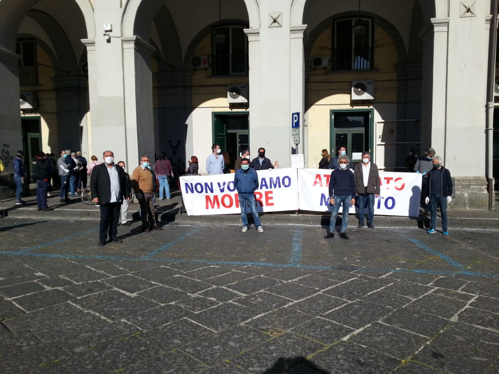 Una delle precedenti proteste degli operatori del mercato ortofrutticolo di Aversa
