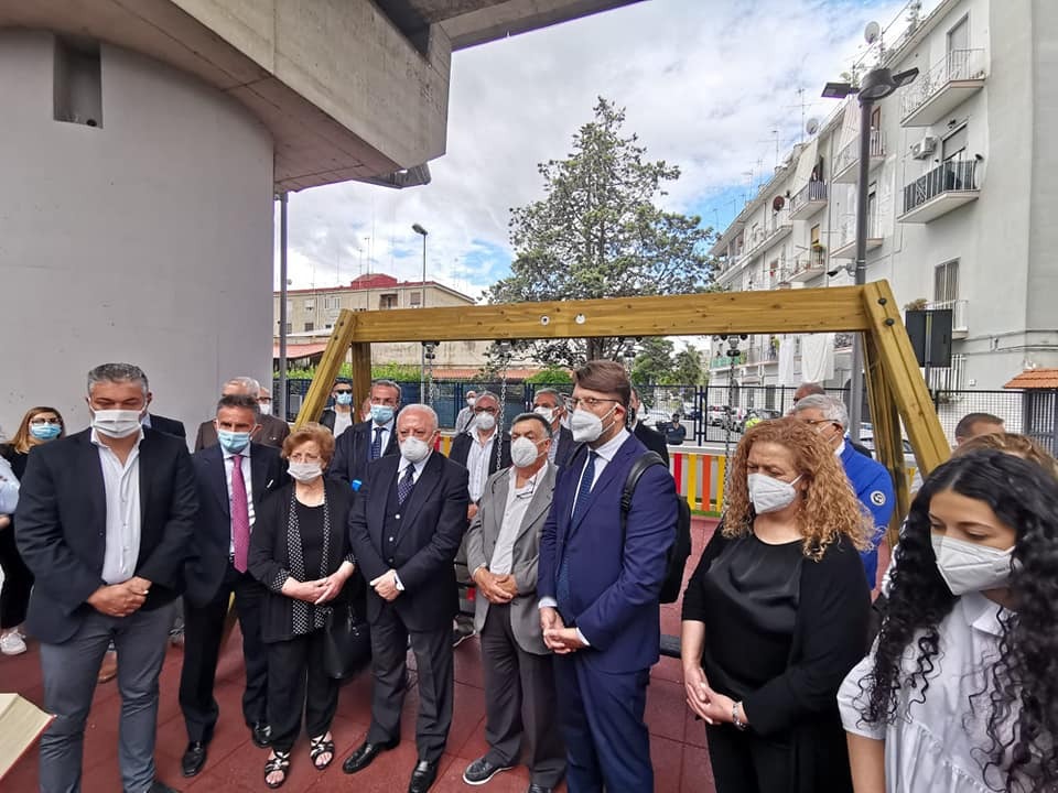 All'inaugurazione è intervenuto anche il governatore Vincenzo De Luca, che poi ha tagliato il nastro anche del parco giochi di Piscinola dedicato al vigilante Francesco Della Corte, ucciso due anni fa da una baby-gang