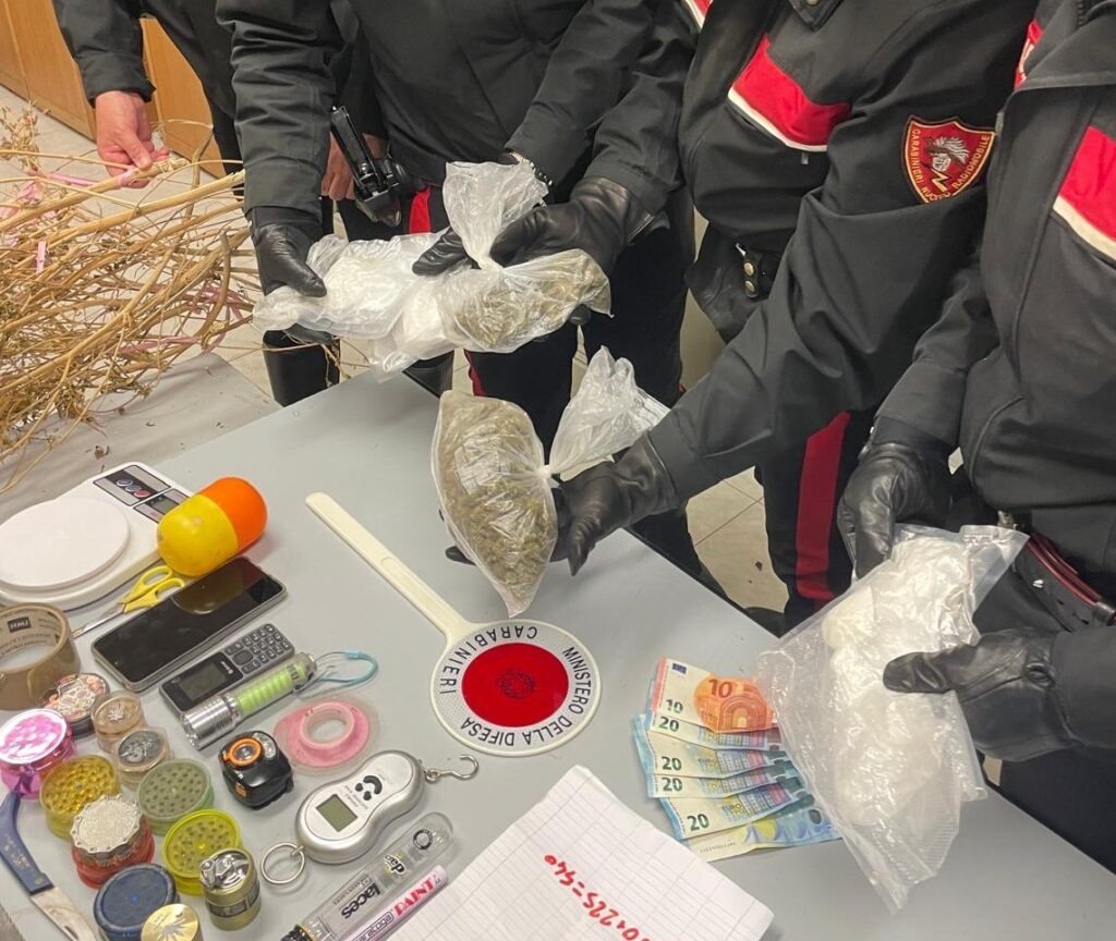 Il ragazzo è stato fermato in via degli Oleandri mentre viaggiava a bordo di uno scooter con la targa alterata mediante nastro adesivo nero. Alla vista dei militari ha tentato di allontanarsi, ma è stato prontamente bloccato. Durante il controllo, il 20enne — già noto alle forze dell’ordine — ha opposto resistenza, spintonando e strattonando i carabinieri nel tentativo di fuggire. Una volta immobilizzato, è stato trovato in possesso di una modica quantità di marijuana. La successiva perquisizione domiciliare ha portato al rinvenimento di otto piante di cannabis in essiccazione e di un consistente quantitativo di droga già pronta per lo smercio: 190 grammi di cocaina, 250 grammi di marijuana e 10 grammi di hashish, per un totale di 440 grammi di sostanze stupefacenti. Tutto il materiale è stato sequestrato.