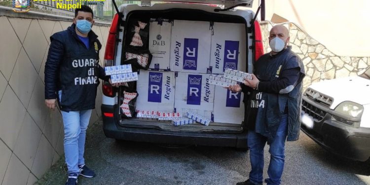 Il comando provinciale della guardia di finanza di Napoli ha arrestato, nel quartiere di Barra, zona orientale di Napoli, quattro persone e sequestrato sei quintali di sigarette di contrabbando. Nel corso di un servizio di controllo del territorio, le fiamme gialle hanno notato due furgoni entrare in un parco, a distanza di pochi minuti l’uno dall’altro e, al momento delle operazioni di carico e scarico delle stecche di sigarette, sono intervenute. Nei vani dei veicoli è stato ritrovato un ingente quantitativo di “bionde”, del tipo cheap white, marcate “Regina” sprovviste del contrassegno di Stato e che, se immesse sul mercato, avrebbero fruttato 250mila euro.