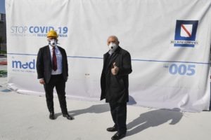 Sono arrivati all’ospedale Del Mare di Napoli nella serata di ieri i cinquantasette tir con a bordo le strutture modulari e le apparecchiature mediche per l’allestimento del Covid center, un presidio specifico per trattare i malati da Covid-19 presente sul territorio. Partiti da Padova in mattinata, i primi blocchi andranno a costituire una delle tre strutture prefabbricate previste dal piano della Regione per far fronte all’emergenza epidemiologica in corso. L’edificio che sorgerà accanto all’ospedale partenopeo garantirà settanta posti ulteriori in terapia intensiva, ai quali si andranno poi ad aggiungere cinquanta posti forniti dalle altre due strutture analoghe previste a Caserta presso l’ospedale San Sebastiano e a Salerno presso l’ospedale Ruggi d’Aragona. Un totale di 120 posti letto suddivisi in tre strutture costate 12 milioni di euro, tutte appaltate alla ditta veneta Med, azienda nota principalmente per la sua collaborazione con Fincantieri nella fornitura dei reparti ospedalieri della Marina militare italiana.  Secondo quanto dichiarato dall’architetto Antonio Bruno, direttore dei lavori, le strutture arrivate nel capoluogo saranno completamente montate. Le fasi di collaudo e di messa in funzione del centro, poi, verranno portate a termine subito dopo Pasqua.