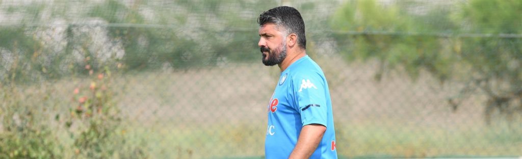 L’allenatore del Napoli, Rino Gattuso, durante l’allenamento odierno